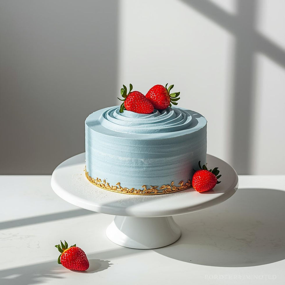 Eine traumhafte Torte mit sanftem Biskuit, frischen Erdbeeren und einer zarten Creme in himmlischem Blau. Durch das blaue Matcha-Pulver (Schmetterlingsblüte) bekommt die Torte ihre besondere Farbe – ein echter Hingucker!